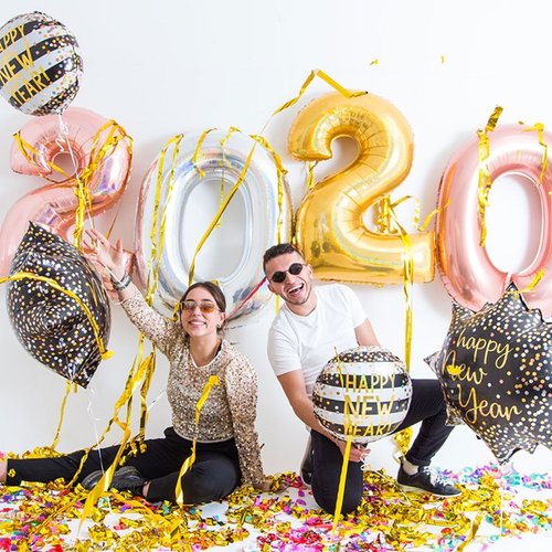 Round 18" New Year Confetti Glitter Holographic - Single Pack - Grabo Foil